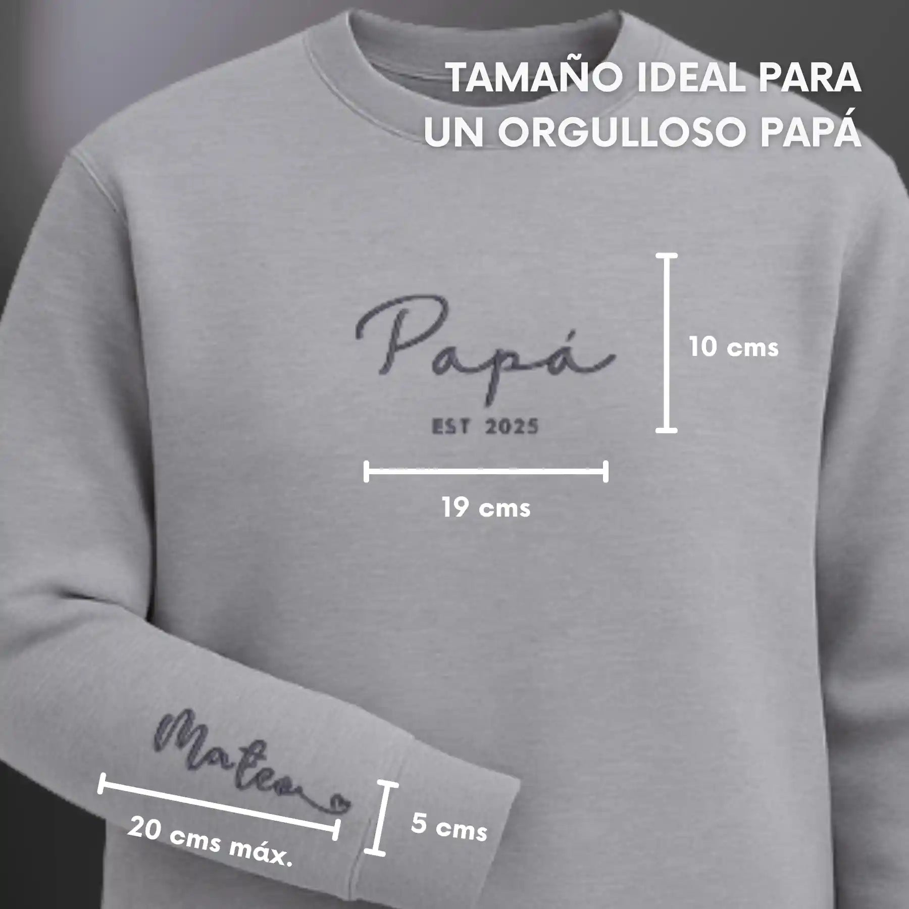 ✅ Bordado Papá (tamaño 19 x 8 cms aprox) sobre el centro del pecho.