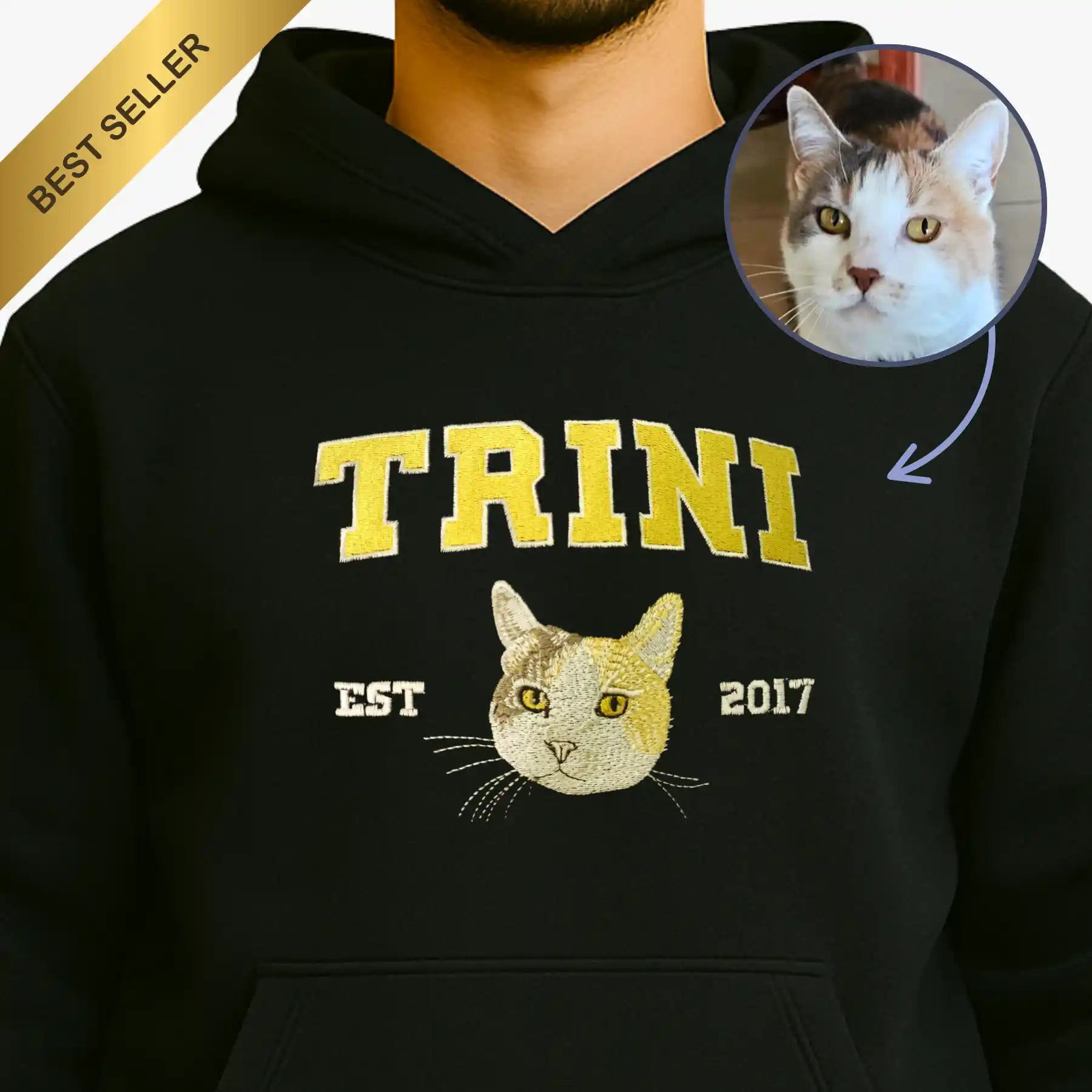 Cara de tu Mascota en Bordado Hiper Realista Estilo College - Polerón Canguro