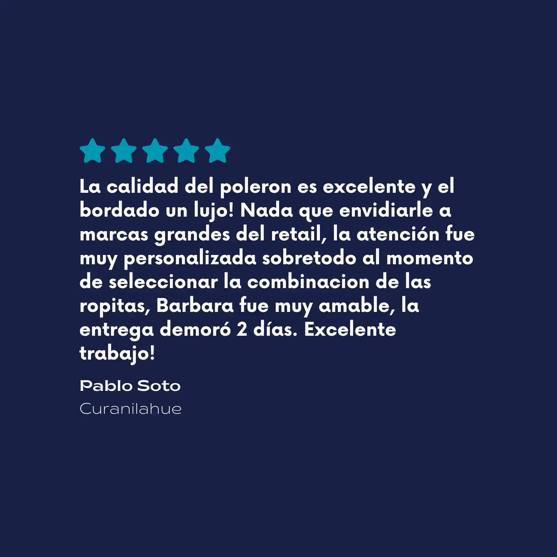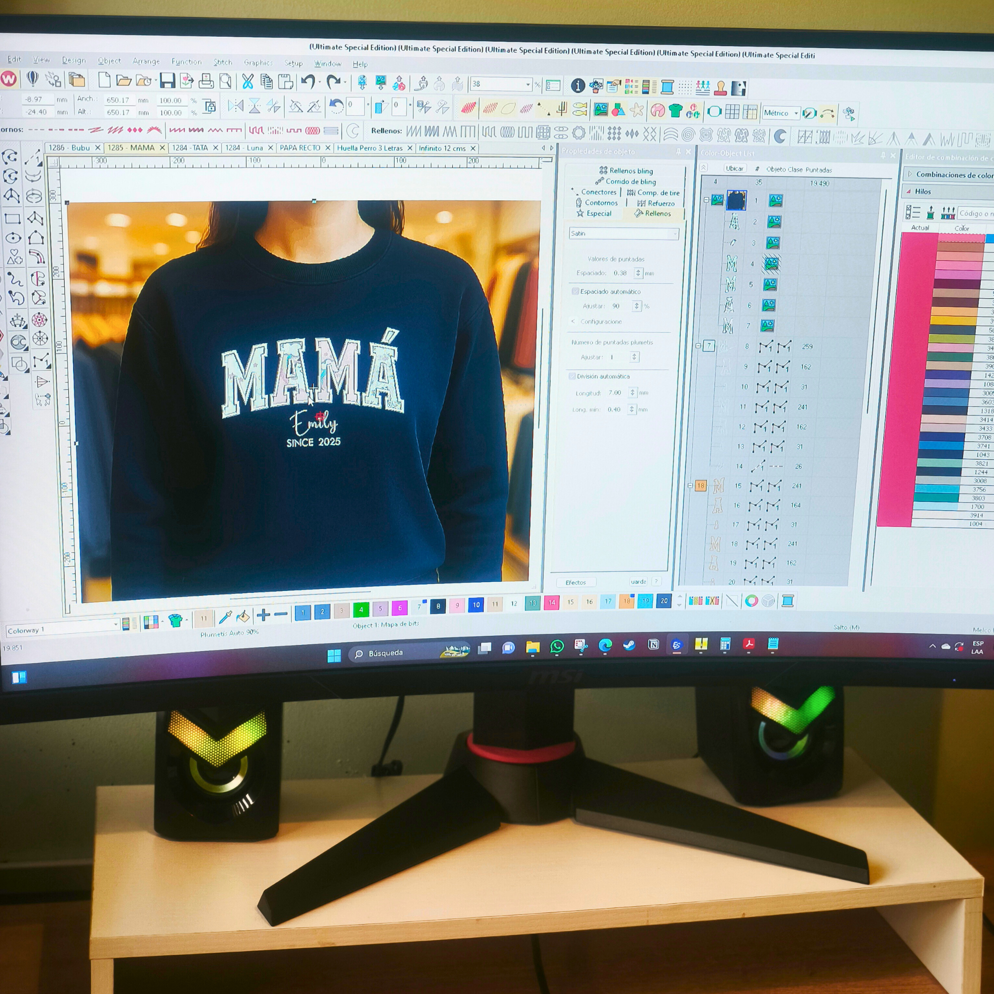 Una vez recibida tu ropita, te enviaremos un diseño digital para que lo apruebes y elijas el color del bordado.
