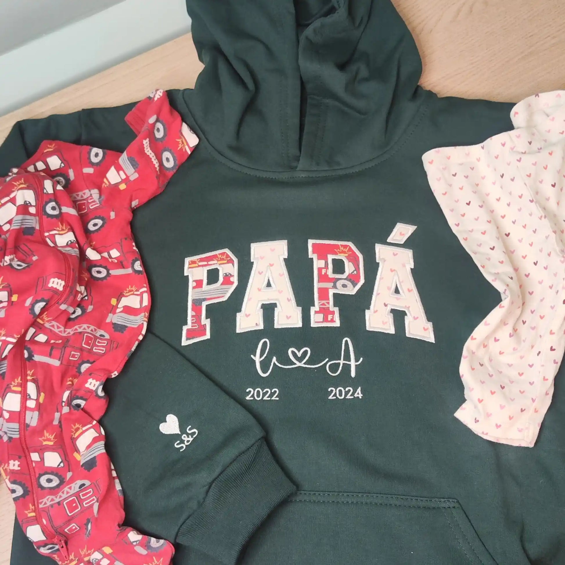 ¡El regalo perfecto para mamá, papá, abuelo, abuela y más! Un polerón canguro bordado que guarda un trocito de la ropita de tu bebé. Tu nueva prenda favorita, 100% personalizada.