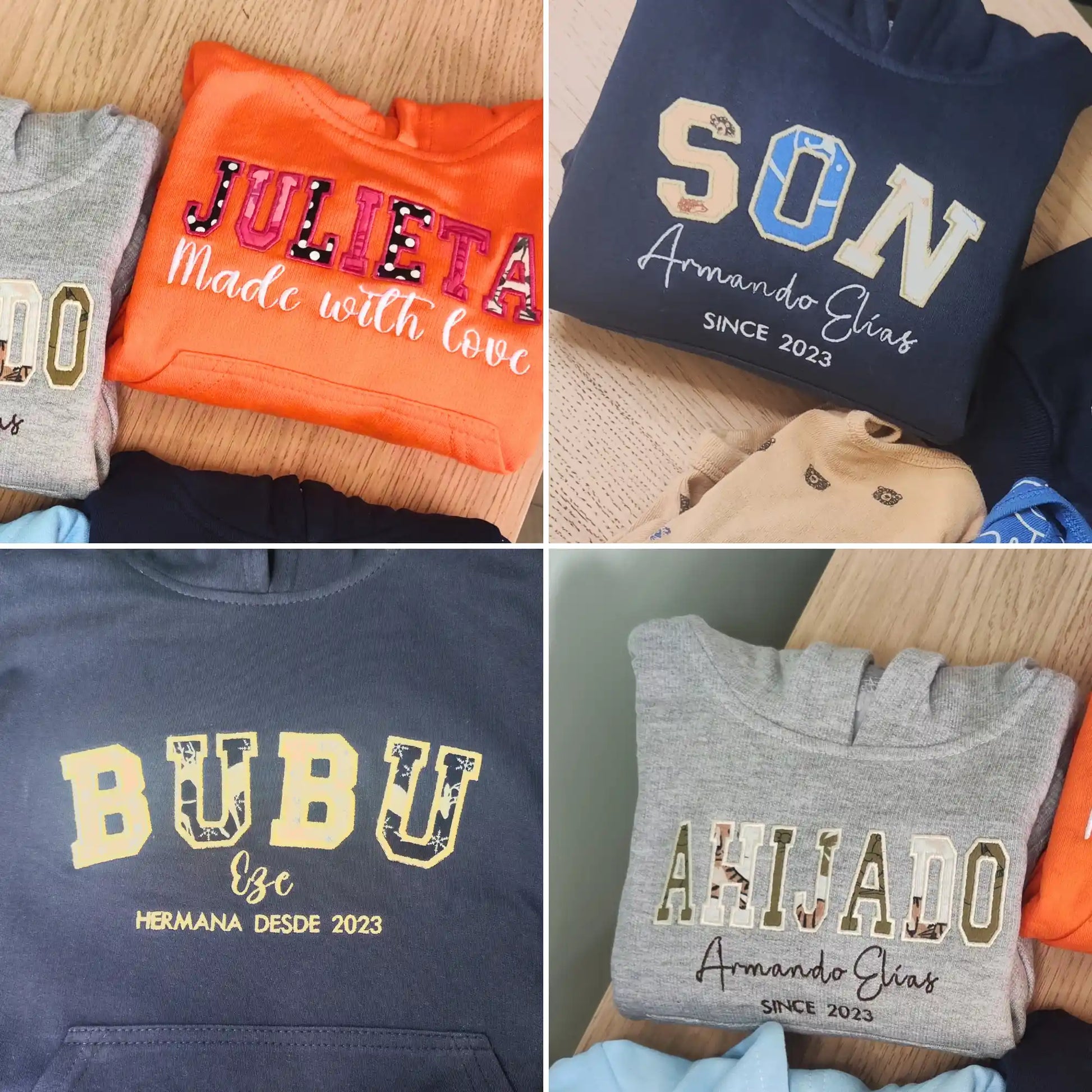 ✅ Bordado personalizado en el pecho (hasta 7 letras) con técnica de aplicación utilizando tela de la ropa de tu bebé o ser querido.